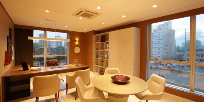 - 4 salas de reunião retráteis entregues climatizadas e decoradas